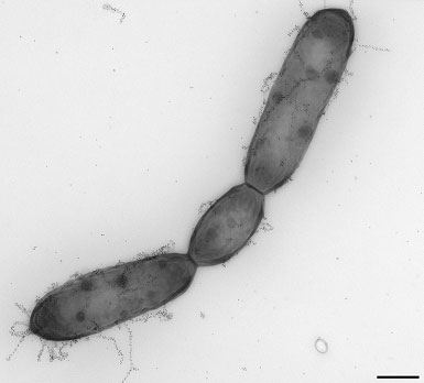 Lactobacillus GG with its hair by immunogold electron microscopy. Kankainen et al. 2009